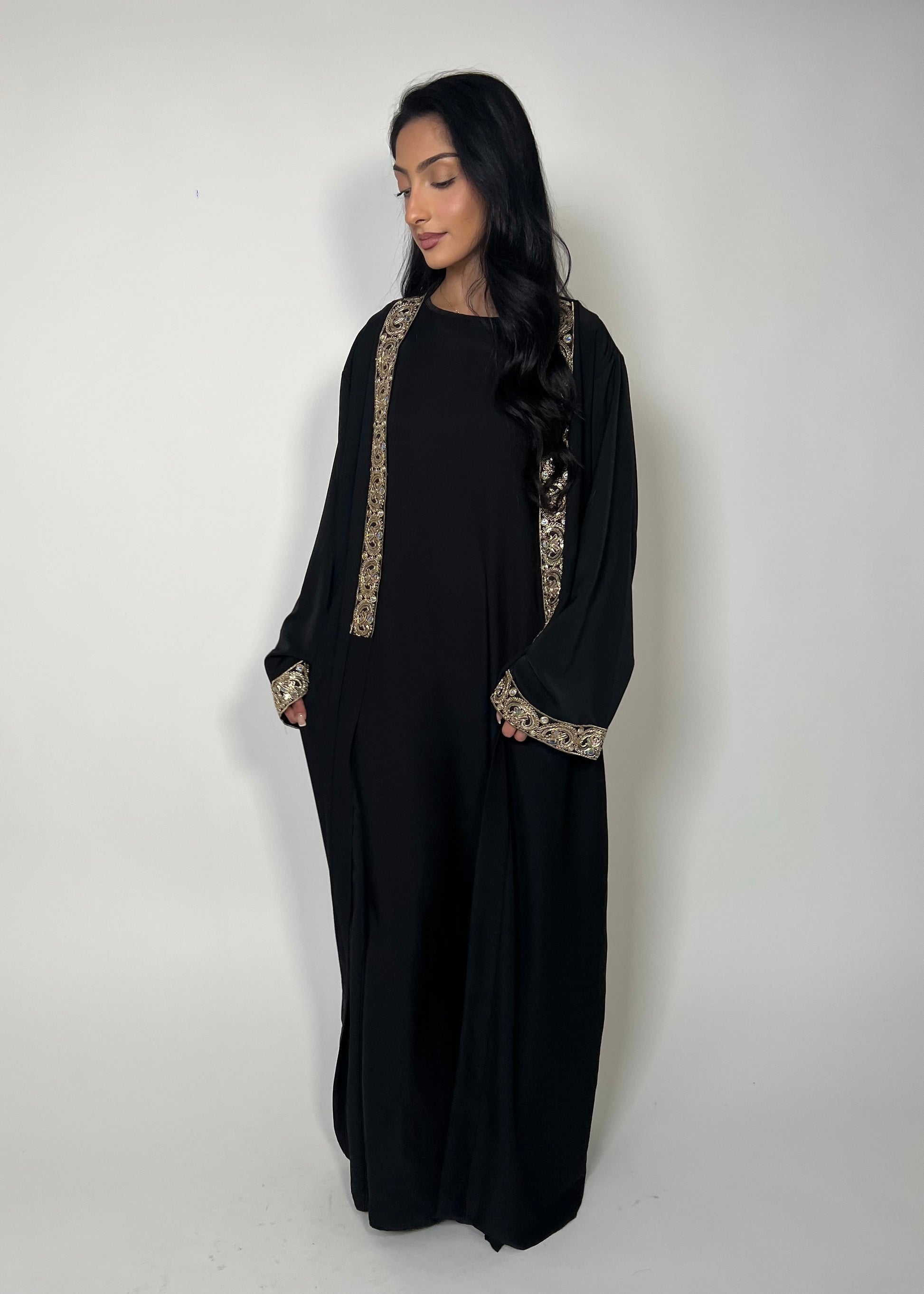 Luxury Silk Sequin Detailing Two Piece Open Abaya