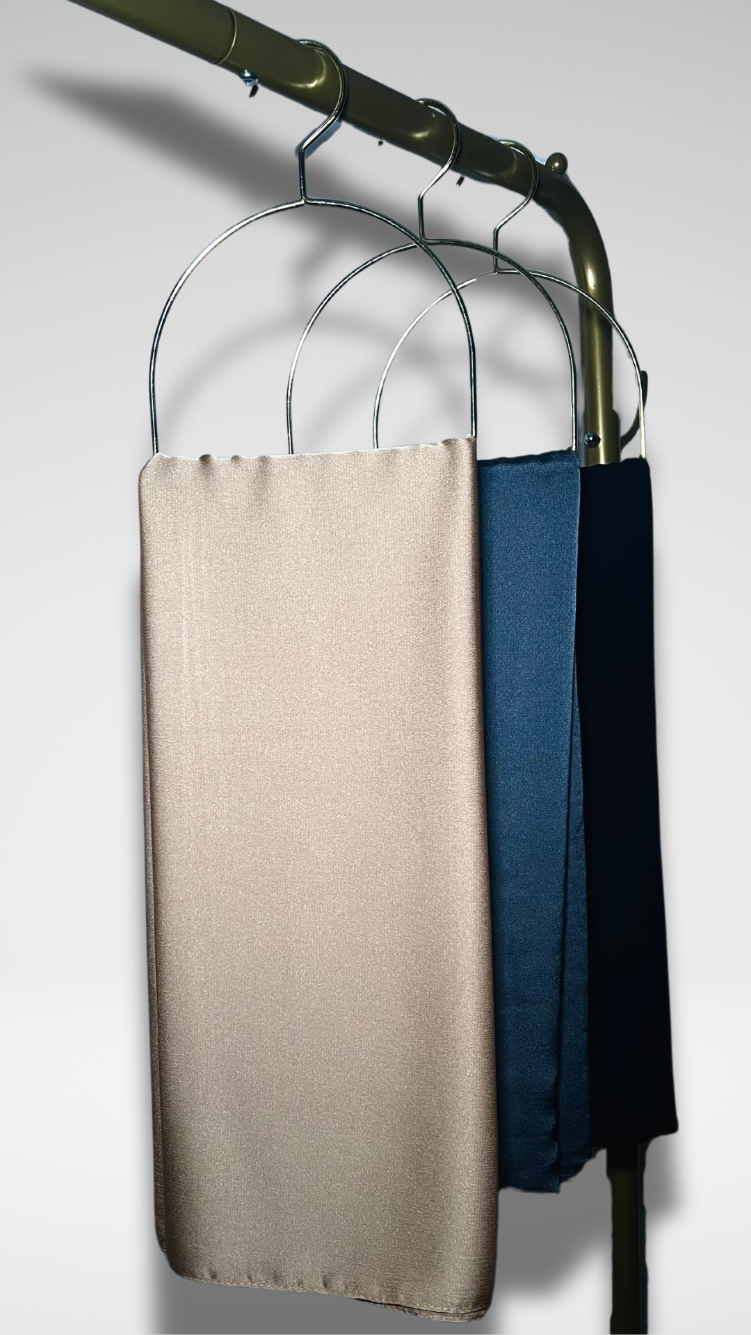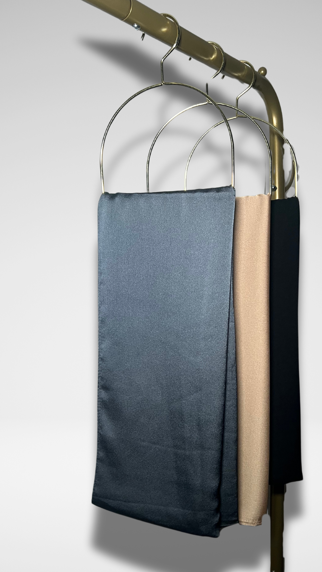 Satin Grain Hijab with Chiffon Inner Lining is a high-quality, luxurious hijab made with satin material. It features a reversible inner lining of chiffon, making it versatile and stylish for any occasion. This hijab is perfect for those wanting to elevate their look with elegance.