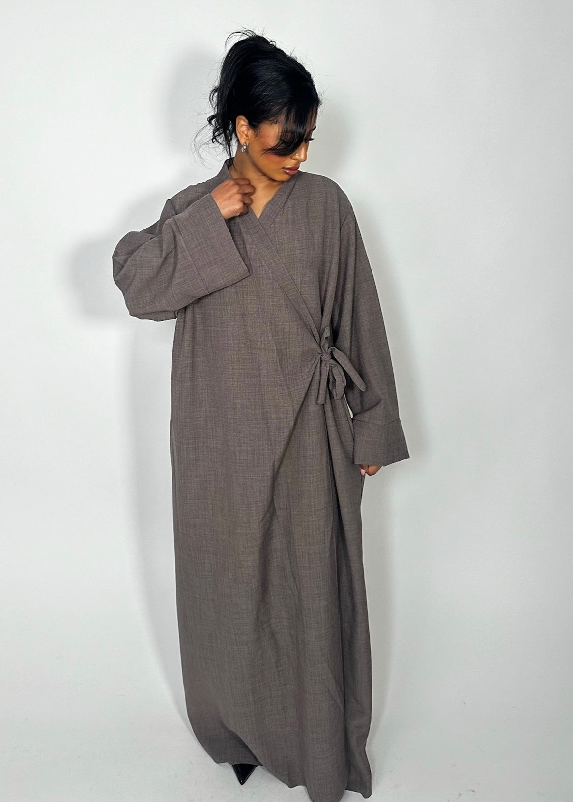 Linen Wrap Side Tie Up Abaya